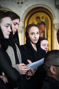 Песнопения богослужения исполнил смешанный хор духовной школы под управлением иеромонаха Аверкия (Шапошникова).