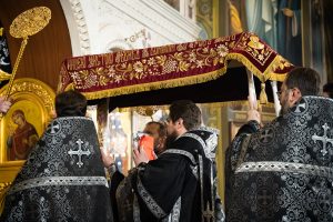 По окончании великого славословия с пением погребального «Святый Боже» был совершен крестный ход с Плащаницей. Затем перед Плащаницей были прочитаны пророчество о воскресении из книги пророка Иезекииля (Иез. 37:1-14), чтение из Апостола об искупительной Жертве, принесенной Христом (1 Кор. 6:7-8, Гал. 4:13-14), после чего было прочитано евангельское зачало о запечатании гроба Господня и приставлении к нему стражи (Мф. 27:62-66).