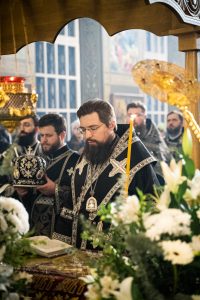 10 апреля 2026 года, в канун Великой Субботы, викарий Ростовской епархии епископ Таганрогский Артемий совершил утреню с чином погребения Плащаницы Господа нашего Иисуса Христа в храме Преполовения Пятидесятницы при Донской духовной семинарии города Ростова-на-Дону.