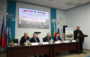 Войсковой священник Всевеликого войска Донского протоиерей Георгий Сморкалов в приветственном слове отметил высокий уровень сотрудничества ЮНЦ РАН и Патриаршего Вознесенского войскового всеказачьего собора, благодаря которому на базе духовного центра казачества уже несколько лет проводятся выставки научных работ и просветительские мероприятия, посвященные истории донского казачества. В дар приходу Патриаршего Вознесенского собора академик Геннадий Матишов передал уникальные издания по истории Дона и донского казачества для будущей Патриаршей библиотеки.