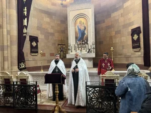 Поминальное богослужение в память святых мучеников совершили настоятель церкви Сурб Арутюн Тер Тиран (Авагян) и настоятель церкви Сурб Хач города Ростова-на-Дону Тер Тадеос Тертерян.