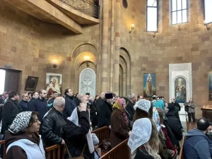 По окончании богослужения состоялась церемония возложения цветов к памятнику «Геноциду — нет!», установленному у ворот храма.