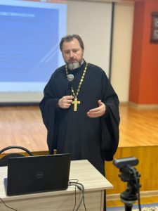 Перед участниками семинара с лекцией на тему «Религиозные основы общества и личности: этика в современном мире» выступил проректор по научной работе Донской духовной семинарии иерей Алексий Овчинников.