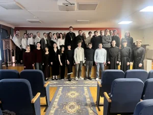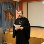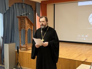 После завершения официальной части и чаепития, для приглашенных студентов иерей Алексей Овчинников провел экскурсию по храму Преполовения Пятидесятницы и духовной школе.