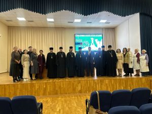 29 октября в Ростовском институте защиты предпринимателя состоялось заседание секции Восточного благочиния. В работе секции приняли участие представители Восточного благочиния города Ростова-на-Дону во главе с благочинным протоиереем Димитрием Осяк, представители органов власти, образования и культуры, профессорско-преподавательский состав и студенты РИЗП. Пленарное заседание открыла ректор Ростовского института защиты предпринимателя Анна Паршина, отметившая высокую актуальность и социальную значимость темы чтений. Она подчеркнула, что в эпоху стремительных перемен именно духовно-нравственные ценности помогают обществу сохранять культурную идентичность и верность традициям. С докладом перед участниками выступил благочинный Восточного округа протоиерей Димитрий Осяк, который рассказал о важности сохранения духовного единства многонационального народа России в условиях современных вызовов.