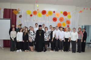 6 ноября в Анастасиевской СОШ им. В. А. Греченко состоялся открытый урок на тему «Семейные ценности». В мероприятии приняли участие благочинный Матвеево-Курганского района иерей Евгений Зайцев, настоятель Покровского храма села Анастасиевка иерей Иоанн Пташинский, директор школы Наталья Борцова, а также учителя и старшеклассники Анастасиевской и Марфинской школ. Открывая урок, благочинный иерей Евгений Зайцев выступил с докладом и презентацией на тему «Просвещение и нравственность», подчеркнув значимость духовно-нравственного воспитания и опираясь на слова святителя Иоанна Златоуста: «Воспитание — самое святое из всех дел». С докладом выступил также настоятель Покровского храма иерей Иоанн Пташинский, отметив важность семьи и семейных ценностей для личности и государства в целом.