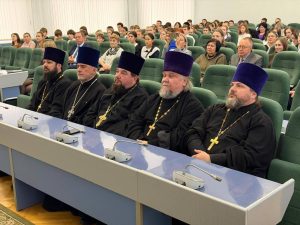 11 ноября в Медиапарке Донского государственного технического университета состоялась панельная дискуссия «Преподавание нравственных дисциплин в системе образования: проблемы и перспективы». В мероприятии, собравшем ректоров, преподавателей, студентов и представителей духовенства, активное участие приняли представители Донской духовной семинарии: ректор, доктор богословия протоиерей Тимофей Фетисов и проректор по учебной работе иерей Олег Малышев. Организатором дискуссии выступил проректор по научной работе Донской духовной семинарии, доктор юридических наук, профессор и секретарь Ростовского отделения ВРНС иерей Алексий Овчинников. Его доклад «Изучение основ нравственности и освоение нравственных ценностей в системе образования: очевидны ли нормы морали в условиях современного общества» был посвящён анализу кризиса идентичности в секулярном мире и роли традиционной культуры и религиозного мировоззрения в формировании объективных нравственных норм.