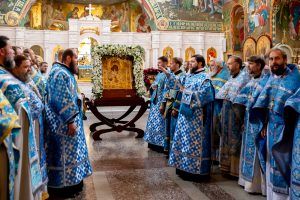28 сентября Донская икона вновь была торжественно встречена в Покровском кафедральном соборе города Шахты. На богослужение собрались духовенство и верующие Александровск-Грушевского, Багаевского, Новошахтинского, Радионово-Несветайского и Нижнедонского благочиний.