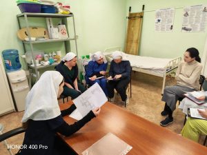 «Несмотря на то, что наши сестры имеют большой опыт ухода, мы пришли к выводу, что периодически необходимо обновлять как теорию, так и практику. Обучение проводят опытные наставники по уходу. После необходимых тестов, практическая часть занятий проходит в игровой форме, обучающиеся делятся на две группы – одна выполняет элементы ухода, другая фиксирует ошибки, и наоборот», – рассказывает Старшая сестра сестричества Анна Керимова.