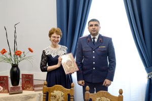 По уже сложившейся традиции Войско и исторический совет передали изданные книги общественности: образовательным учебным заведениям, учреждениям культуры, библиотекам, казачьим кадетским корпусам, школам и средним профессиональным учебным заведениям со статусом «казачье». Войсковой атаман Сергей Бодряков вручил сертификаты на получение книг заместителю министра образования Ростовской области Екатерине Саковниковой, заместителю министра культуры Андрею Молодшеву, директору департамента по делам казачества и кадетских учебных заведений Сергею Красавину, заместителю председателя комитета по управлению архивным делом Сергею Володькову, директору Государственного архива области Евгению Шандулину, директору Донской государственной публичной библиотеки Анне Желябовской и директору культурно-выставочного центра ДГТУ «Донская казачья гвардия» Ирине Романовой. Книгой-альбомом «Честь дороже жизни. Матвей Иванович Платов» пополнится Патриаршая библиотека, формируемая при Патриаршем Вознесенском войсковом всеказачьем соборе Новочеркасска.