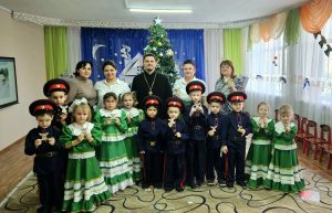 7 января Георгиевский храм города Таганрога посетили воспитанники Таганрогского центра помощи детям № 7. Дети приняли участие в Божественной литургии и причастились Святых Христовых Тайн. У новогодней ёлки воспитанники воскресной школы храма представили рождественское театрализованное выступление и исполнили колядки. У вертепа во дворе храма клирик Георгиевского храма иерей Георгий Канча вручил гостям сладкие подарки.