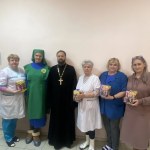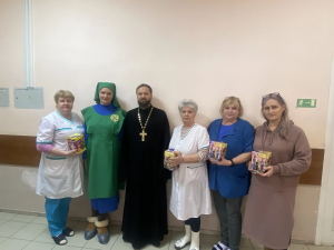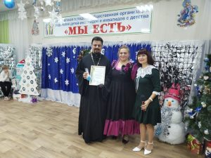 Hастоятель храма преподобного Серафима Саровского иерей Александр Орешин и вице-президент благотворительного детского фонда имени великой княгини Елизаветы Федоровны Романовой Елена Заяц посетили ребят находящихся на лечении в психоневрологическом диспансере Ростовской области, чтобы поздравить персонал и юных пациентов с Рождеством Христовым.