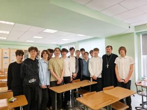 20 февраля настоятель храма святителя Митрофана Воронежского иерей Игорь Денисов встретился с учащимися 9-х классов школы № 106. Священник рассказал о церковных традициях Масленичной недели и духовном значении Великого поста, ответил на вопросы школьников.
