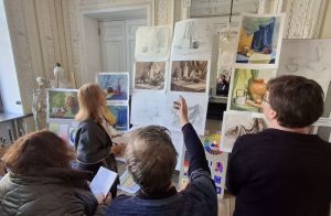 Особое внимание было уделено выпускным курсам и ходу выполнения дипломных проектов, включающих создание сложных иконографических композиций. Были представлены эскизные разработки и проработка композиционных и цветовых решений.