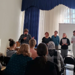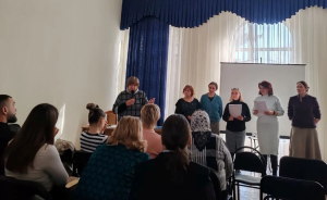 Следующие занятия проводились в форме групповой работы под руководством методиста-координатора ЕОРОиК Наталии Режабек. Педагоги подбирали средства и приёмы для введения материала, актуализации знаний и обучения элементам интерактивной коммуникации, ориентированным на понимание смысла. Практические задания были представлены на III этапе Кирилло-Мефодиевской олимпиады.