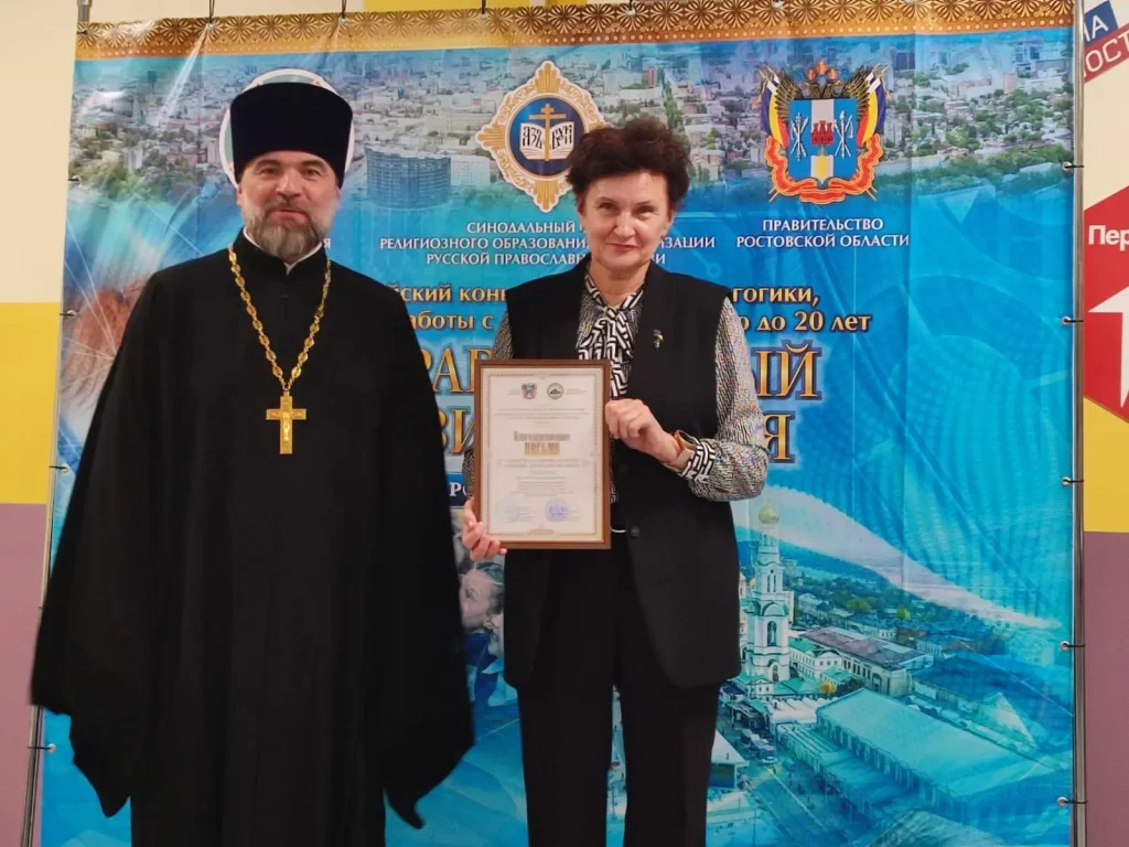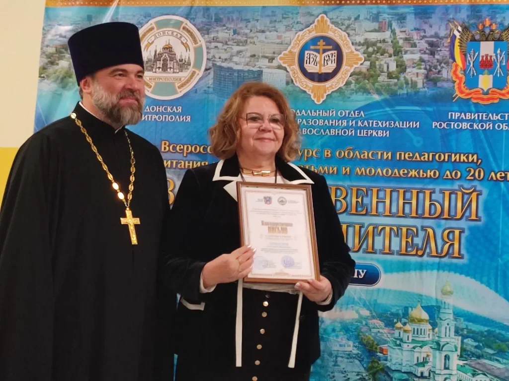 Советник Главы Донской митрополии по вопросам религиозного образования и катехизации иерей Александр Верченко вручил благодарственные письма за личный вклад, содействие в организации и проведении I (регионального) этапа Всероссийского конкурса «За нравственный подвиг учителя» в Донской митрополии членам конкурсной и экспертной комиссий.
