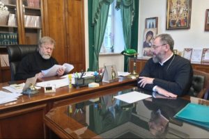 28 октября 2025 года состоялась рабочая встреча председателя Синодального отдела по церковной благотворительности и социальному служению протоиерея Михаила Потокина с ректором Донской духовной семинарии протоиереем Тимофеем Фетисовым. Основной темой обсуждения стала разработка новой магистерской программы «Социальное служение Русской Православной Церкви», планируемой в качестве совместного пилотного проекта в рамках взаимодействия Отдела и семинарии. Во встрече также принял участие руководитель отдела социального служения Синодального отдела по благотворительности диакон Игорь Куликов.