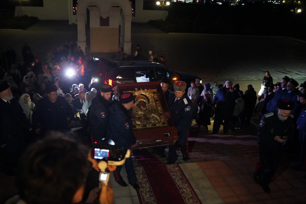 29 октября 2025 года святыню встречали на городской пристани Семикаракорска епископ Волгодонский и Сальский Антоний, глава города Волгодонска Дмитрий Вельможко, духовенство и казачество Семикаракорского и Константиновского благочиний, представители администрации и многочисленные прихожане.