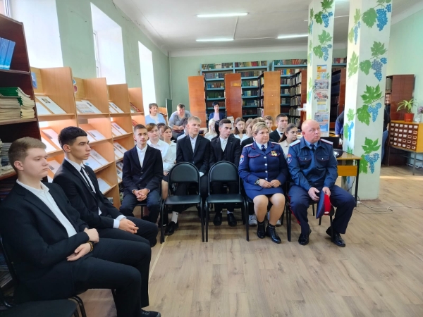На встрече присутствовали заместитель атамана юртового казачьего общества «Куйбышевский юрт» Марина Шевченко, учащиеся 10-х классов МБОУ Куйбышевской СОШ имени А.А. Гречко, представители казачества и духовенства.