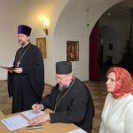 Клирик Михаило-Архангельского храма иерей Димитрий Гераськин представил анализ и предложения по взаимодействию с педагогическим сообществом, студентами и школьниками, а также учебник для вузов «Основы нравственности» и учебно-методическую литературу.