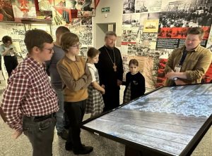 3 апреля настоятель храма протоиерей Серий Красников и юные прихожане посетили Музей истории города Ростова-на-Дону. Гостей встретил директор Сергей Гордиенко. Он рассказал собравшимся об истории создания нового музея, который был открыт в декабре 2024 года, о представленных в нём экспозициях и о перспективе его развития.