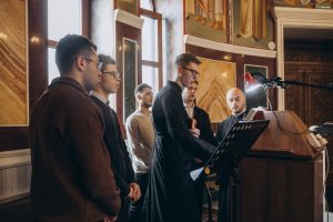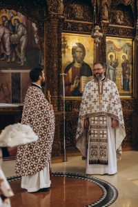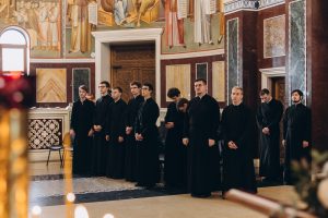 Настоятелю храма иеромонаху Григорию (Соколову) сослужили ректор Донской духовной семинарии протоиерей Тимофей Фетисов и старший помощник проректора по воспитательной работе иерей Артемий Чамин.
