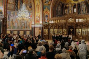 Особым украшением программы стало сольное исполнение стихиры Великого Пятка «Совлекоша с Мене ризы Моя…» гостем из Греции Евристенисом Цолакидисом.