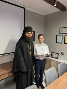 Благочинный Аксайского округа иеромонах Викентий (Свистунов) вручил детям грамоты, поблагодарил их за старание и пожелал Божией помощи на следующем этапе олимпиады.