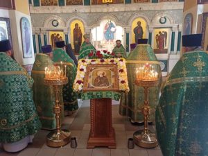 Божественную литургию в праздничный день возглавил благочинный приходов Новочеркасского округа протоиерей Олег Добринский. Ему сослужили настоятель храма иерей Валентин Степанюк, духовник Новочеркасского благочиния игумен Филарет (Авдюшкин), духовенство казачьей столицы.