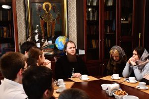 Мероприятие началось с просмотра художественного фильма «Начало пути», посвящённого детским годам и духовному становлению Святейшего Патриарха Московского и всея Руси Алексия II. По окончании просмотра состоялась беседа о христианстве и жизни Церкви в прошлом и настоящем. Студенты приняли активное участие в обсуждении, задавая вопросы и получая развернутые ответы.