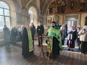 Мероприятие началось с Божественной литургии, которую возглавил иеромонах Иоасаф (Кислица). Все просфорники исповедались и причастились Святых Христовых Таин. Затем иеромонах Маврикий (Звягинцев) и иеромонах Герман (Погорелов) совершили молебен преподобным Спиридону и Никодиму.