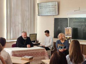 14 ноября 2025 года в МАОУ СОШ № 25/11 города Таганрога в рамках муниципального образовательного проекта «Павловский Таганрог», реализуемого Таганрогским благочинием совместно с Управлением образования города, состоялась встреча благочинного Таганрогского округа, настоятеля Георгиевского храма иерея Бориса Гущина с учащимися 10 класса.