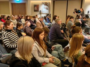 В зале собрались воспитанники семи Детских художественных школ и Детских школ искусств, входящих в творческое объединение «Делаем мир цветным» во главе с Ю. С. Нестеровым, студенты кафедры «Дизайна» Донского государственного технического университета. Мероприятие также посетил заведующий Иконописным отделением Донской духовной семинарии иерей Александр Литвиненко.