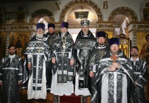 Богослужение возглавил благочинный Восточного округа протоиерей Димитрий Осяк в сослужении настоятеля храма протоиерея Анатолия Комара, клириков благочиния.