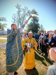 Настоятель храма иерей Максим Клёц приветствовал присутствующих. Священник поблагодарил прихожан за активное участие в строительстве храма.