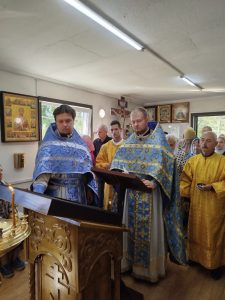 Литургию возглавил настоятель храма иерей Максим Клёц. Ему сослужил настоятель храма Всех святых села Синявское иерей Пантелеимон Шереметьев. Песнопения Литургии исполнил хор храма под управлением регента Ольги Хроминой.