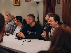 Организаторы курса – настоятель храма иерей Дионисий Сакович и его помощник по миссионерскому служению Денис Чермянинов – рассказали участникам о целях и задачах курса, значении изучения основ веры, фундаменте духовной жизни, а также о тематике и структуре занятий.