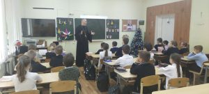 24 декабря клирик храма святого великомученика Георгия Победоносца иерей Андрей Новиков посетил школу № 92, где провел встречу с учащимися, посвященную празднику Рождества Христова, рождественским традициям и духовной подготовке к празднику.