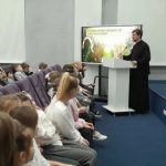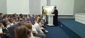 В рамках мероприятия иерей Сергий провел встречу с учащимися, посвященную актуальной теме употребления нецензурной лексики. Данная проблема в последнее время затрагивает не только старшеклассников, но и учеников младших классов. В ходе беседы вред сквернословия был рассмотрен с четырёх аспектов: культурологического, социального, психологического и физиологического.