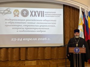 23 апреля 2026 года настоятель храма в честь пророка Илии города Таганрога иерей Павел Дудоладов принял участие в ежегодной XXVII национальной научной конференции с международным участием, организованной Таганрогским институтом управления и экономики.