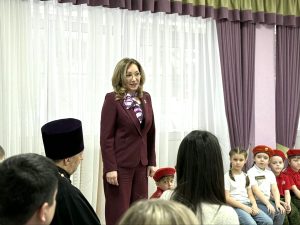 Лариса Тутова в своём выступлении рассказала детям о подвиге юного героя Вити Черевичкина, ставшего символом мужества и верности Родине.