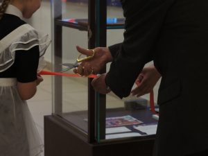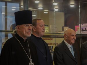 Протоиерей Сергий в своём приветственном слове поблагодарил создателей музея за сохранение исторической памяти и вклад в духовно-нравственное воспитание молодёжи, а также передал в дар образовательному учреждению книги о храмах России.