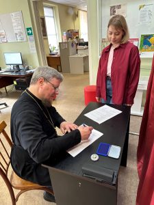 В ходе визита священник встретился с руководством и сотрудниками учреждения, а также передал книги в библиотечный фонд.