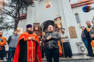 Перед храмом было организовано праздничное чаепитие для всех участников события.