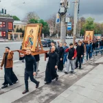 Крестный ход начался после Божественной литургии. Его возглавил настоятель храма мученицы Татианы при ДГТУ иерей Дионисий Сакович.
