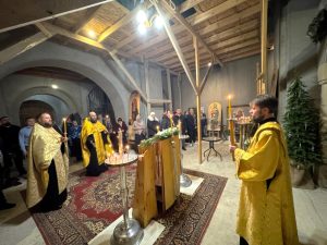 В канун праздника всенощное бдение в Никольском храме возглавил благочинный Аксайского округа иеромонах Викентий (Свистунов) в сослужении настоятеля храма и штатного клирика Одигитриевского храма города Аксая диакона Евгения Прохорова.