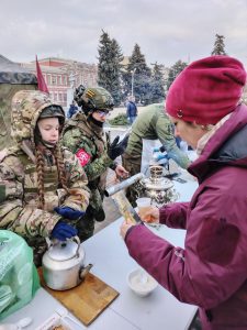 Активное участие в раздаче буклетов приняли воспитанники клуба «Азовский дозор» — одного из подразделений «Предтеченского городка».