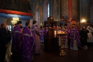 По окончании Литургии протоиерей Олег Добринский обратился к молящимся с пастырским словом, в котором отметил необходимость сугубого подражания святым в наше время, что позволяет сохранять милосердие и чистоту жизни в христианах.