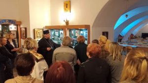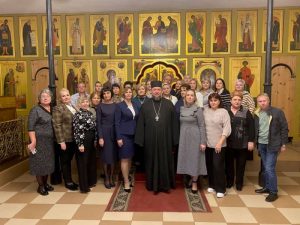 После вступительных слов о проведении совместных культурно-просветительских и воспитательных мероприятий школ города с Новочеркасским благочинием, направленных на формирование у учащихся духовно-нравственных ценностей, патриотизма и уважения к различным культурам и религиозными конфессиями, священник провел для руководителей образовательных учреждений экскурсию по экспозициям церковного музея.