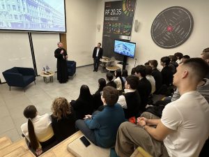 19 марта 2026 года в арт-пространстве «Точка кипения» Ростовского государственного экономического университета состоялась встреча настоятеля храма Всех Святых, в земле Российской просиявших, протоиерея Сергия Красникова с преподавателями и студентами.